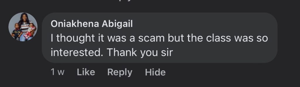 See what Mrs Uzoamaka also said after the last session…
